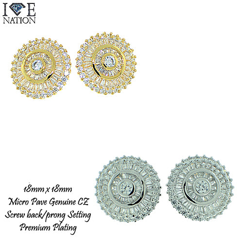 MEN'S MICRO PAVE CZ EARRING RHODIUM AND 14KT GOLD PREMIUM PLATING SCREW BACK SETTINGS MADE OUT BRASS MATERIAL GENUINE CLEAR CZ AND BLACK CZ MICRO PAVE SETTINGS EACH STONES IS HAND MADE 4 PRONG SETTINGS 14KT WHITE GOLD RHODIUM FINISH/GM METAL PREMIUM PLATING Pictures might not describe how good has the Earing cz stones and settings