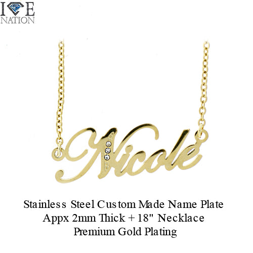 CUSTOM MADE NAME PLATE , PREMIUM GOLD PLATING AND 2MM THICK, COMES WITH 18" NECKLACE