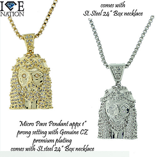 MICRO PAVE CZ PENDANT WITH GENUINES CZ COMES WITH 24" STAINLESS STEEL BOX NECKLACE PREMIUM PLATING