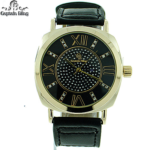 MEN'S HIP HOP DESIGNER ELEGANT PAVE LOOK EYE CATCHING DIAL WATCH WITH LEATHER BAND