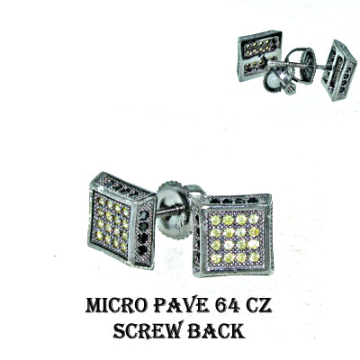 STERLING SILVER MICRO PAVE EARRING 6X6 WITH SCREW BACK SETTING