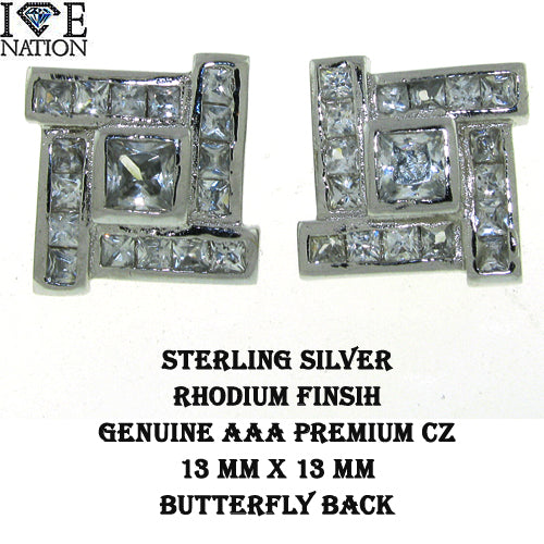 STERLING SILVER EARRING BUTTERFLY BACK SETTING PREMIUM GENUINE CZ RHODIUM PLATING PRONG SETTING