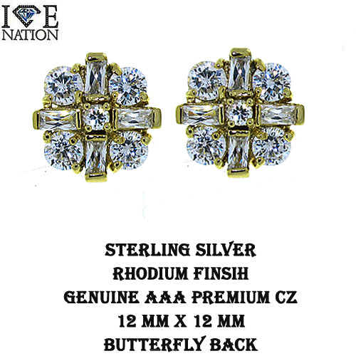 STERLING SILVER EARRING BUTTERFLY BACK SETTING PREMIUM GENUINE CZ RHODIUM PLATING PRONG SETTING