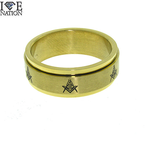Gold Tone Stainless Steel Masonic Ring