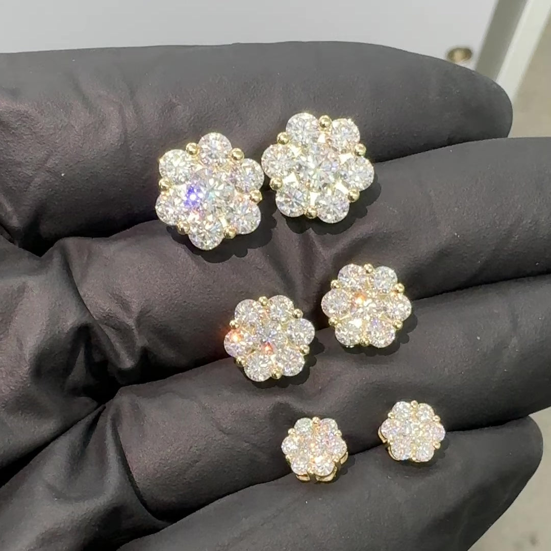 🌟 Crafted with precision, these earrings feature a captivating floral design with shimmering Moissanite diamonds.