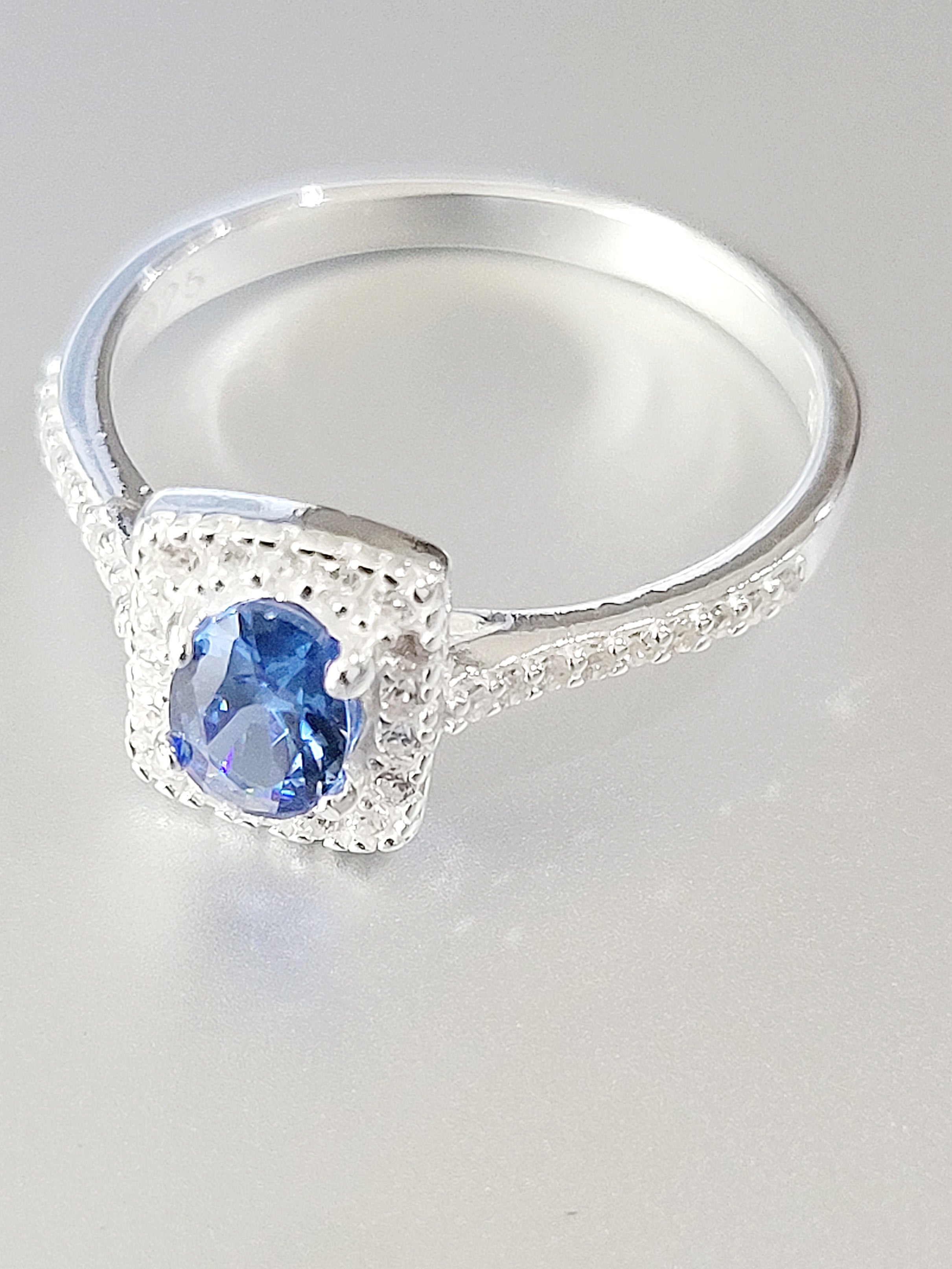 Silver Emerald cut CZ Ring 925 -17F (Blue)