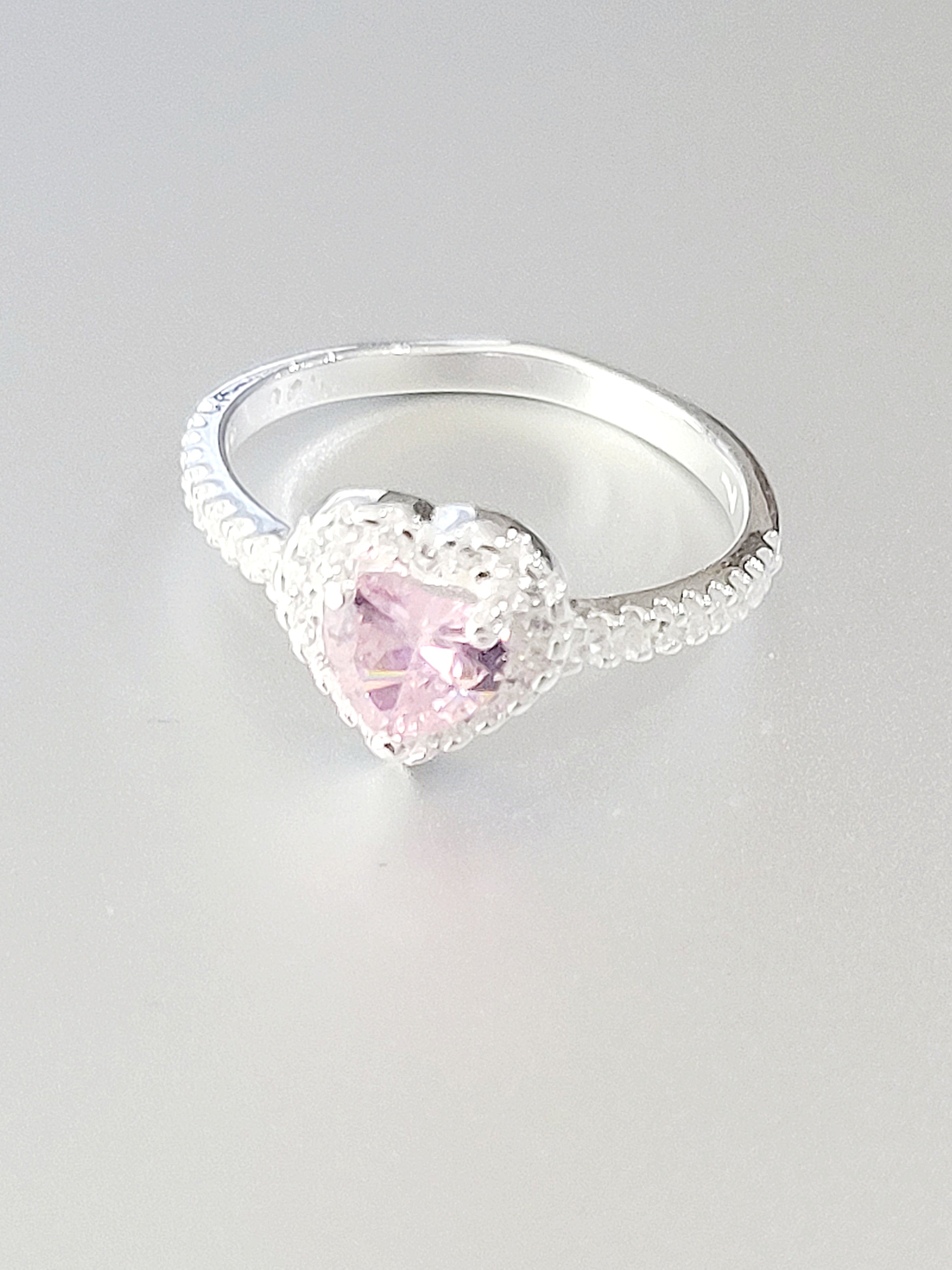 Silver Heart CZ Ring 925 -16G - (Pink)