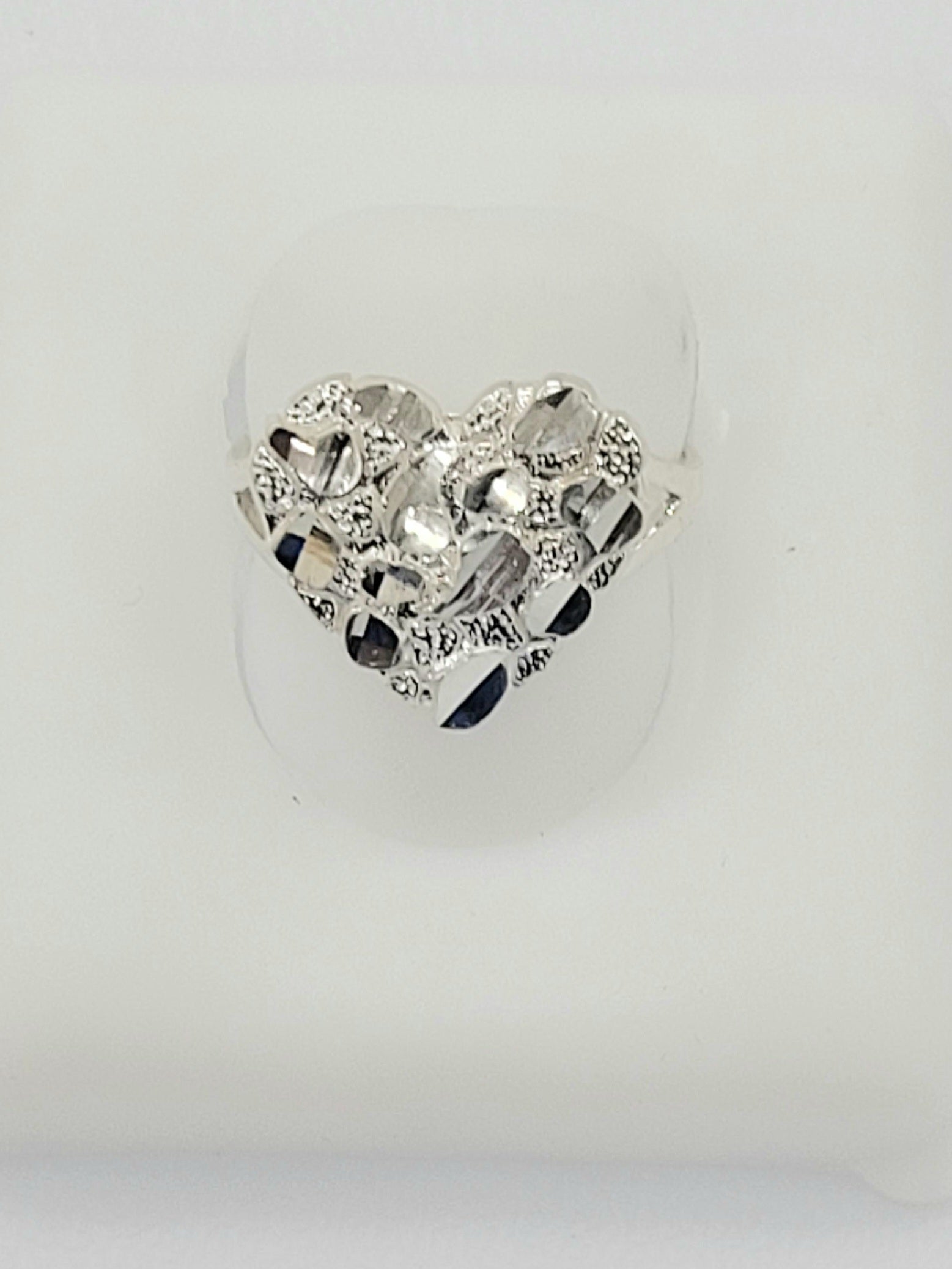 Crafted from authentic 925 sterling silver, this heart ring weight 2.5 grams features a distinctive nugget texture that catches light beautifully. The organic, hammered surface creates visual depth while the classic heart silhouette delivers timeless elegance. Perfect for layering or wearing solo, this piece combines artisanal craftsmanship with everyday wearability. An ideal choice for those who appreciate genuine silver jewelry with character and refined design.