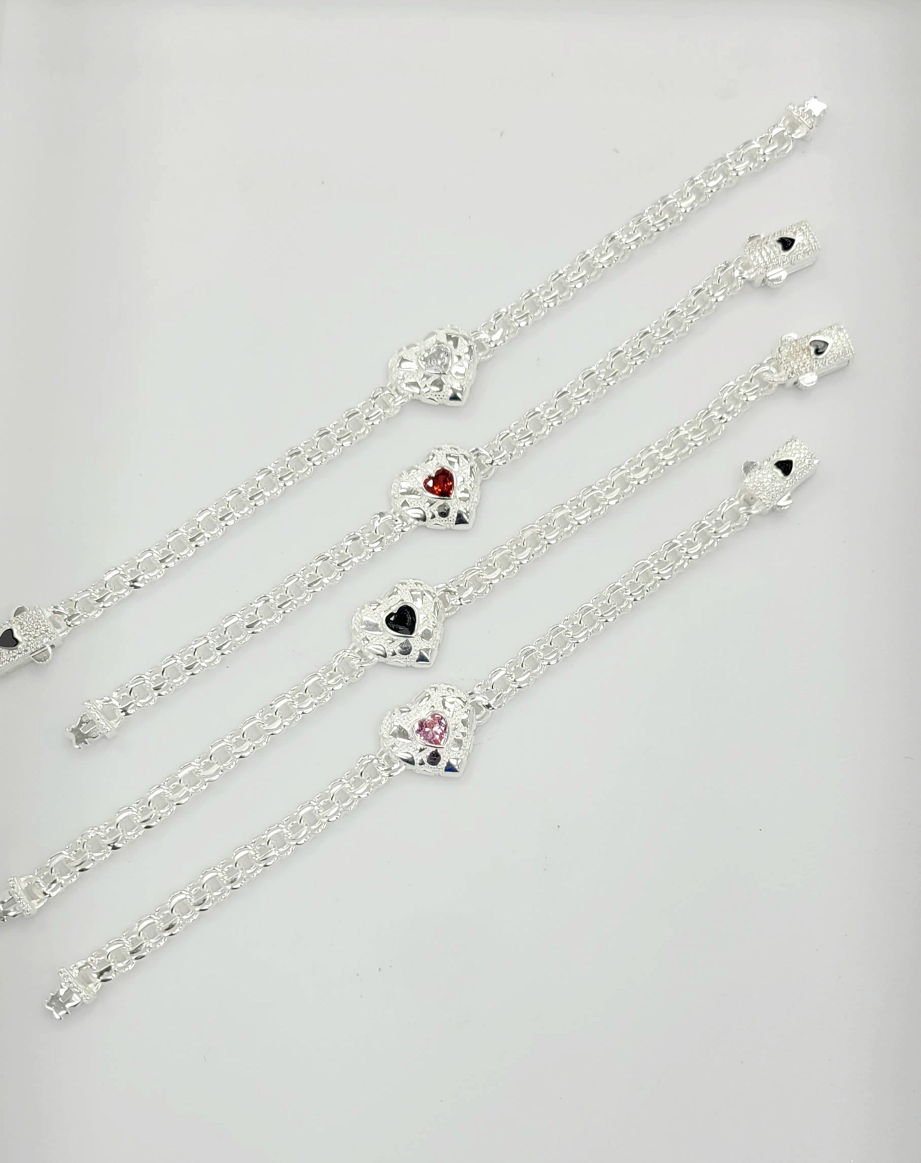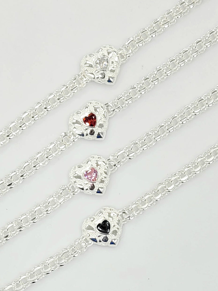 Sterling Silver Chino Nugget Heart with CZ Bracelet