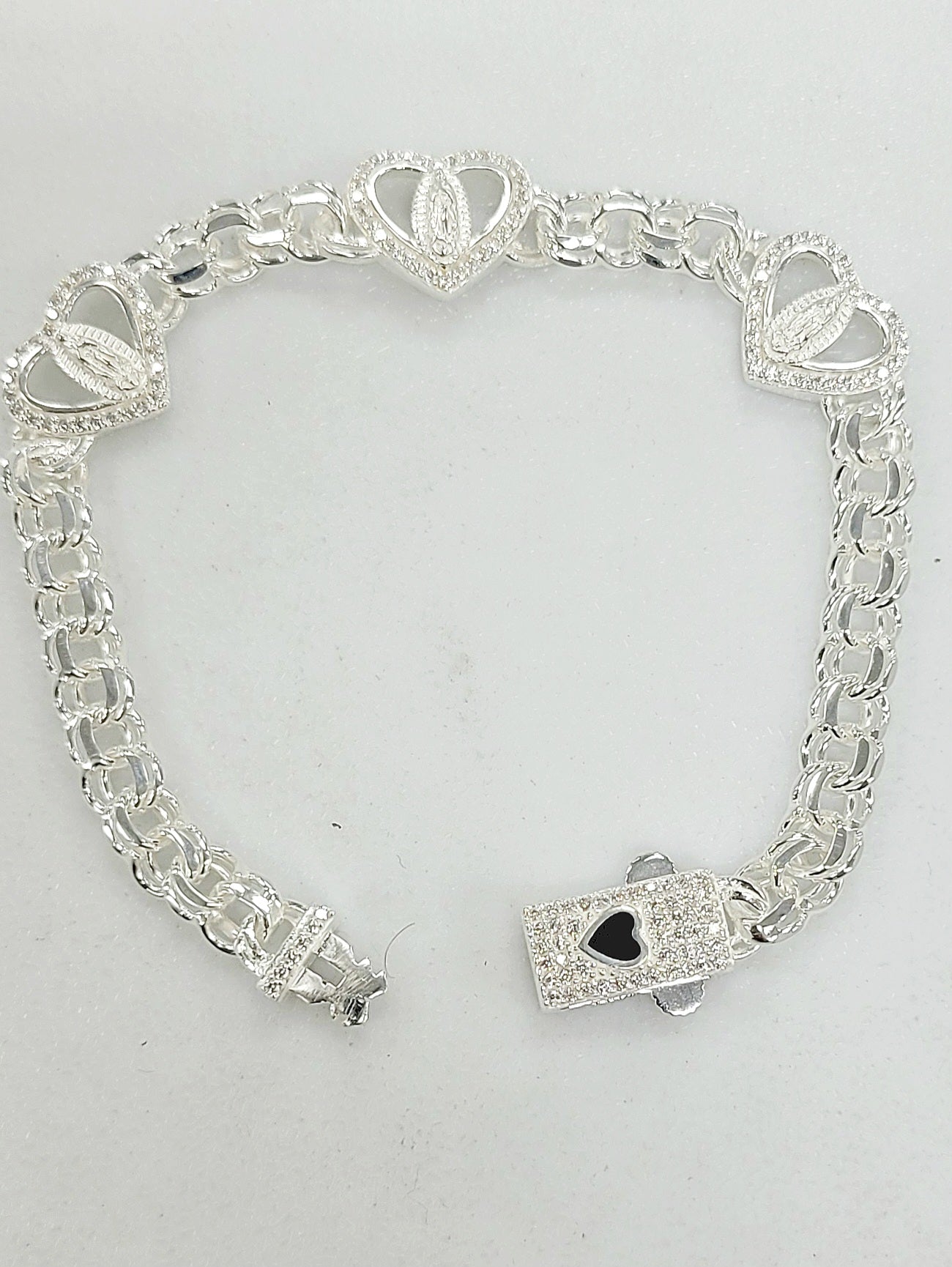 Sterling Silver Chino Heart Virgin Mary Bracelet